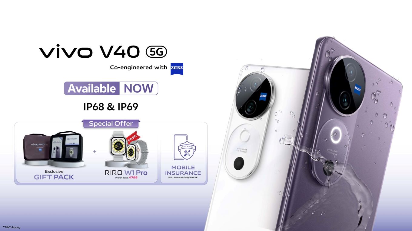 স্লিম ডিজাইনের ভিভো ভি৪০ ফাইভজি: দেড় মিটার পানিতে ৩০ মিনিটের সুরক্ষা