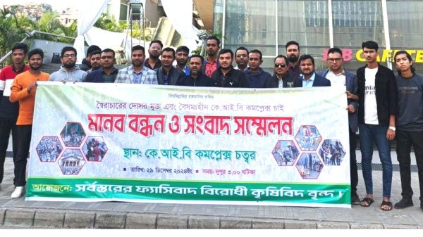 মানববন্ধনে কৃষিবিদ কৃষিবিদ কে.এম. সানোয়ার আলম বলেন, কেআইবিতে এনলিস্টমেন্ট ছাড়াই আওয়ামী ফ্যাসিস্টদের ঘুষ দিয়ে একটি কোম্পানি এককভাবে ব্যবসা পরিচালনা করছে, যারা বিভিন্ন সময়ে ফ্যাসিস্টদের কর্মকান্ডে অর্থায়ন করেছে। এদের বিরুদ্ধে কঠোর শাস্তিমূলক ব্যবস্থা গ্রহণ করতে হবে।