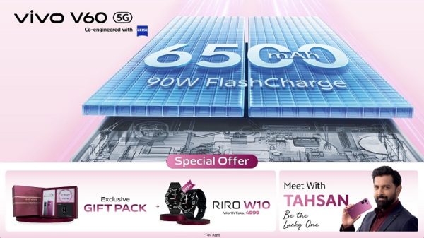 প্রফেশনাল ফটোগ্রাফি, আভিজাত্যপূর্ণ ডিজাইন ও শক্তিশালী পারফরম্যান্সের ভিভো ভি৬০-এর মূল্য মাত্র ৬৪,৯৯৯ টাকা। ফোনটি কিনলেই সৌভাগ্যবান বিজয়ী পাবেন জনপ্রিয় সংগীতশিল্পী ও অভিনেতা তাহসান রহমান খানের সঙ্গে সাক্ষাতের সুযোগ অথবা এক্সক্লুসিভ গিফট প্যাক। ০৭–১৩ সেপ্টেম্বর পর্যন্ত ভিভোর অফিসিয়াল ই-স্টোর বা যে কোনো অথোরাইজড শপ থেকে ভিভো ভি৬০ কিনে উপভোগ করা যাবে অফারগুলো ।