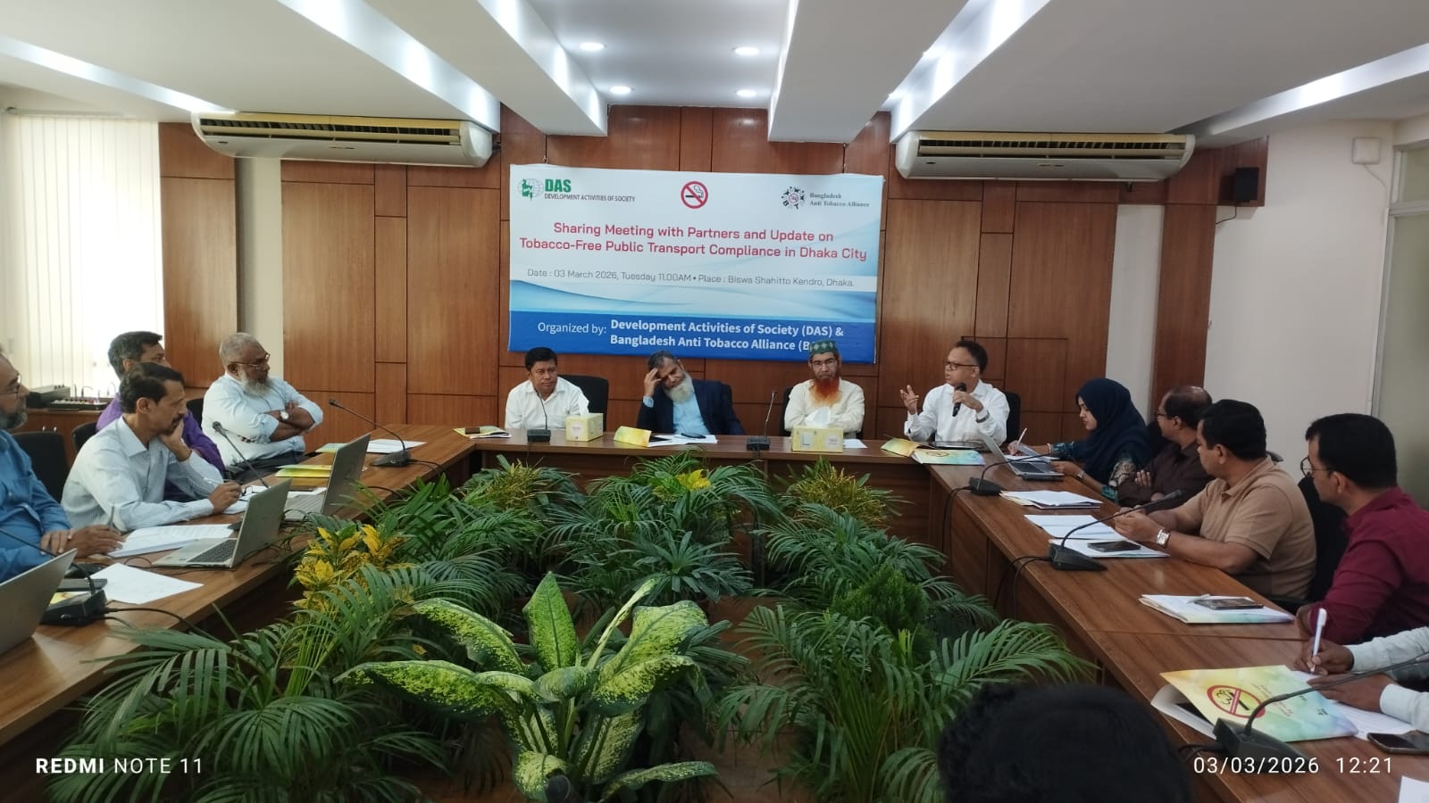 গবেষণায় দেখা গেছে, অধিকাংশ গণপরিবহনে ধূমপানের প্রবণতা কমে এসেছে। পরিবহনে ধূমপানের অভিযোগ করা হলে ৯৩ শতাংশ ক্ষেত্রে পরিবহনকর্মীরাই পদক্ষেপ নেয়, যা আইন বাস্তবায়নের একটি ইতিবাচক দিক। আজ ৩রা মার্চ ২০২৬ রাজধানীর বিশ্বসাহিত্য কেন্দ্র-এর সভাকক্ষে অনুষ্ঠিত এক গবেষণা ফলাফল প্রকাশ অনুষ্ঠনে গণপরিবহনে ধূমপানের ঘটনা বন্ধে আইন শক্তিশালী করার পাশাপাশি কঠোর বাস্তবায়ন জরুরি বলে বক্তারা মন্তব্য করেন। ডেভলপমেন্ট এ্যাকটিভিটিস অব সোসাইটি (ডাস) এবং বাংলাদেশ তামাক বিরোধী জোট (বাটা)-এর যৌথ উদ্যোগে “গণপরিবহনে তামাক নিয়ন্ত্রণ আইন বাস্তবায়নের অবস্থা বিষয়ক কমপ্লায়েন্স মনিটরিং সার্ভের ফলাফল প্রকাশ” শীর্ষক এই অনুষ্ঠান আয়োজন করা হয়।